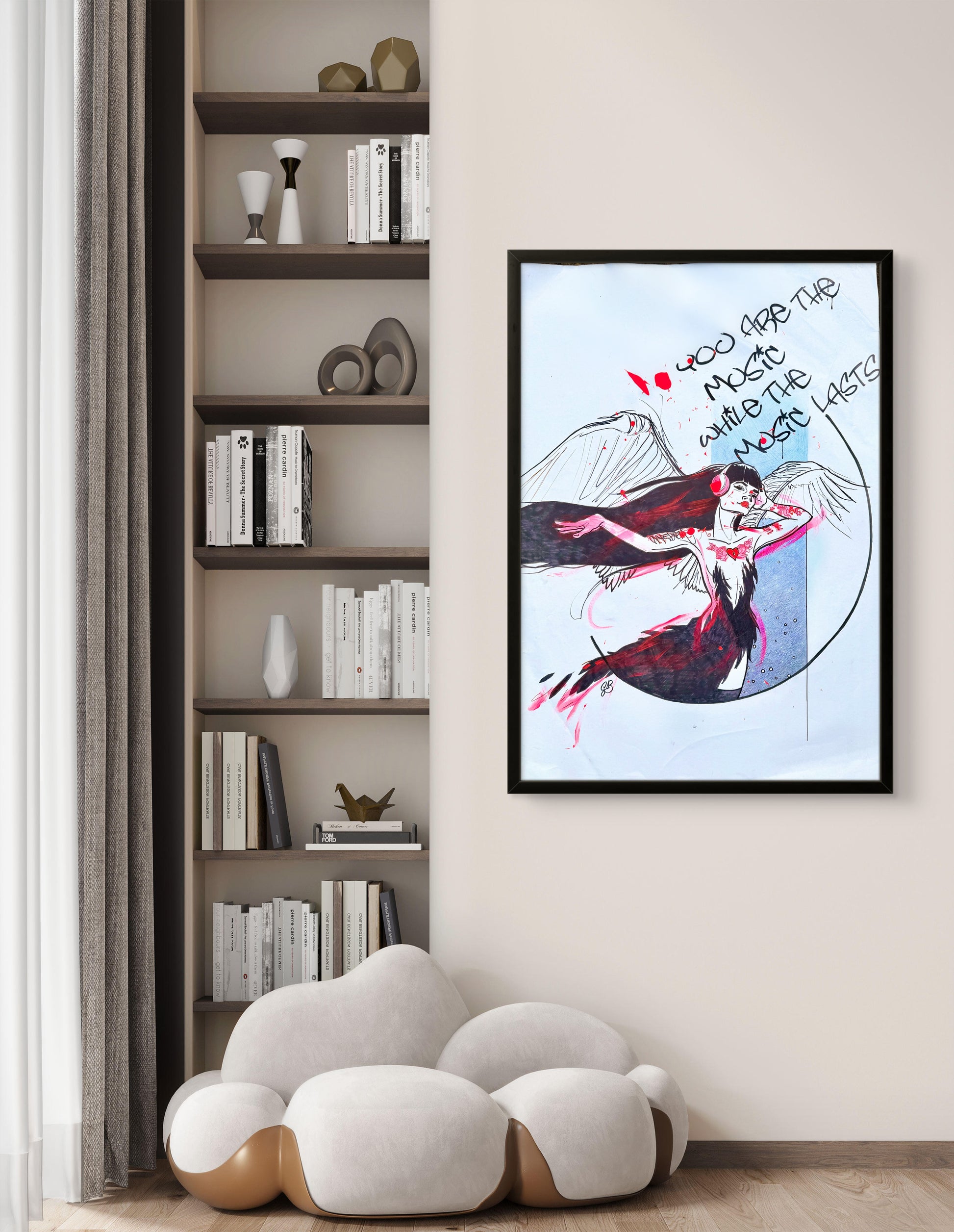 'You Are The Music While The Music Lasts' original drawing using marker pens, pencil crayons and paint on cartridge paper.